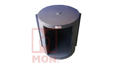 Transfer blindado cilíndrico (pasa bultos) marca MON, construido con placa interior de 3/16” calidad A-36 y láminas exteriores calibre .11 calidad 1010, operable únicamente por la parte interior, pintado en color gris.
